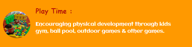 Your child receives the best pre-school experience with a typical day consisting of fun programs, games, and a host of kids learning activities. Our activities ensure your child unearths his/her creativity, discovers, explores and learns new things every day. Also, through KIDS Gym and outdoor play we provide a healthy balance of mental & physical developments in your child.